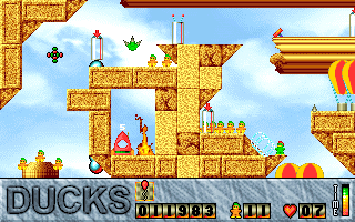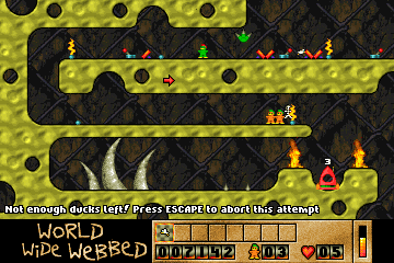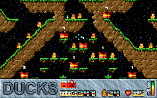 In 1998, a man called Tim Furnish, known also as Hungry Software, made an indie game for DOS called Ducks, a game similar to Lemmings. It also came with a level editor, and I made quite a number of level sets.